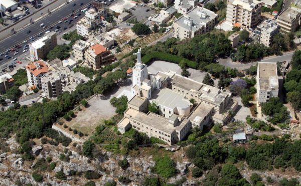 تنبسط أمام الدير ساحة وافرة الظلال، تشرف بإطلالتها الخلاّبة على البحر ووادي نهر الكلب. يتّجه إليها الزائر ليصل إلى كنيسة المسيح الملك، ومنها إلى قاعدة التمثال على ارتفاع 57 مترًا، عبر مصاعد أحدها ﭘـانوراميّ أو عبر درج للمشاة.