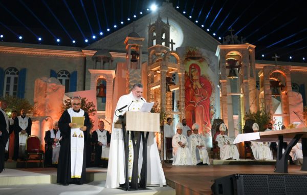 انطلق الاحتفال على وقع ترنيمة “مجد لبنان أعطي له”.