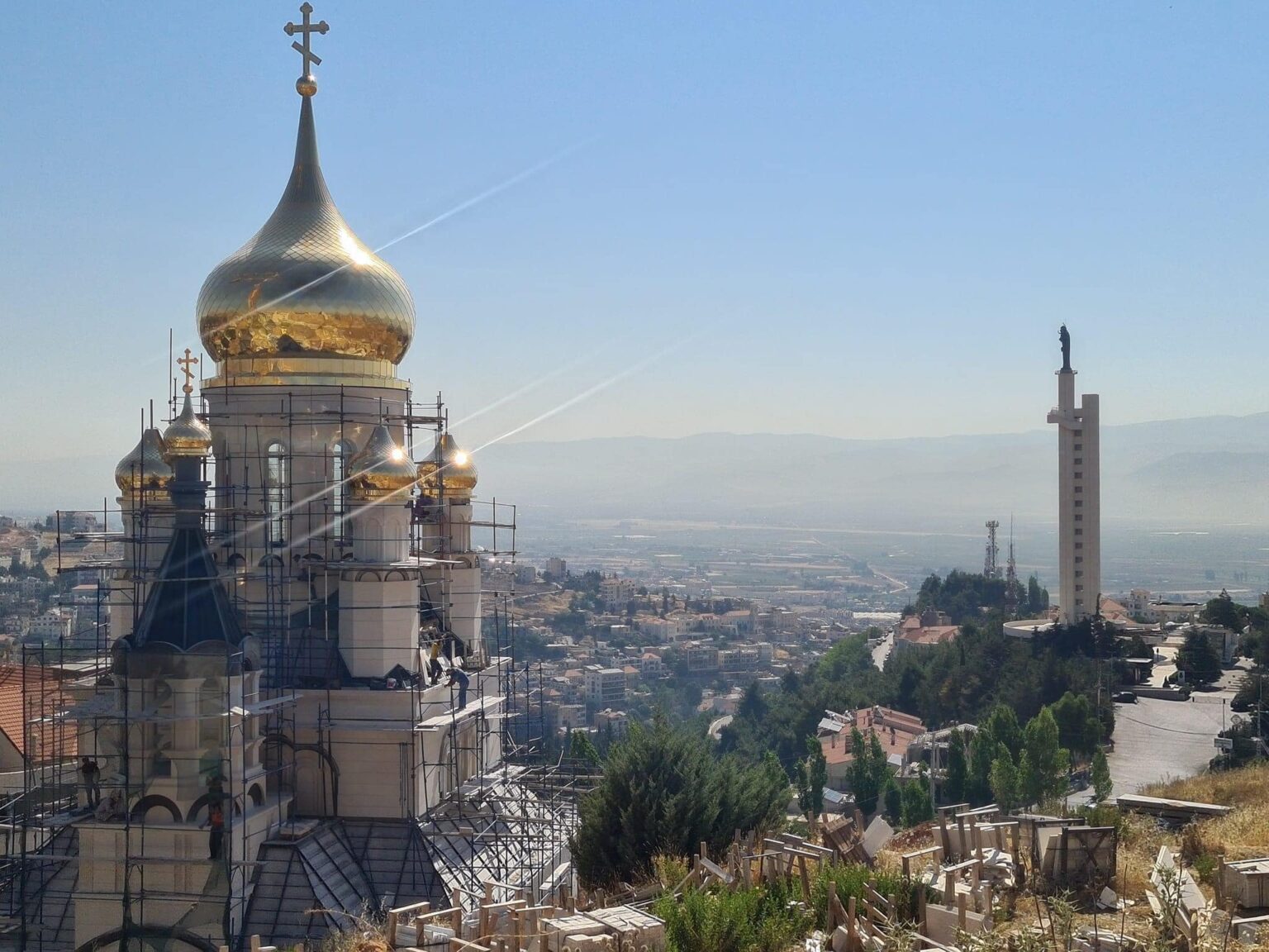 إرتفعت القبب الذهبية يعلوها الصليب، فوق بناء كنيسة “سيدة الفرح” الأرثوذكسية، قيد الانشاء على ضهور زحلة.