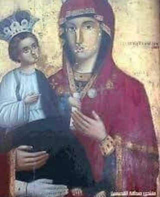( أيقونة رسمها لها القديس يوحنا الدمشقى على جدران السجن)