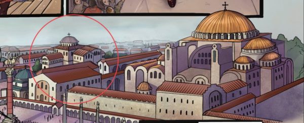 تم استخدامها كمقعد بابوي لمدة خمس سنوات ( ٥٣٢م- ٥٣٧م) بعد تدمير آيا صوفيا في أعمال شغب نيكا. خلال هذه الفترة، وبحسب ما ورد قام الإمراطور جوستينوس الثاني ( ٥٦٥م- ٥٧٨م) وزوجته صوفيا بإصلاح الكنيسة وتزيينها بسقف مُغطى بالذهب وأبواب مصنوعة من الفضة والإلكتروم والذهب.