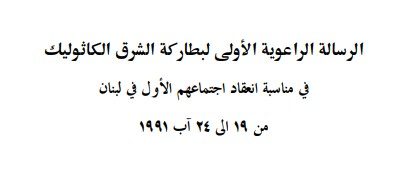الرسالة الراعوية الأولى لبطاركة الشرق الكاثوليك في مناسبة انعقاد اجتماعهم الأول في لبنان من ١٩ الى ٢٤ آب ١٩٩١