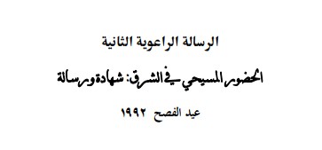 الرسالة الراعوية الثانية الحضور المسيحي في الشرق: شهادة ورسالة عيد الفصح ١٩٩٢