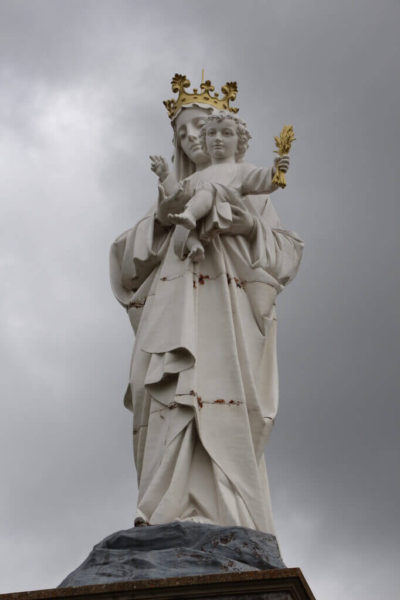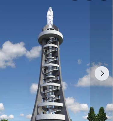 ١. البرج وهو عبارة عن ثلاث اعمدة ضخمة تنطلق بارتفاع 60.3 مترا يعلوه تمثال للعذراء مريم ام النور تحمل ابنها يسوع بارتفاع 14 مترا.