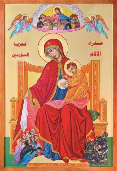 أيقونة عذراء الألام معزّية السوريين التي كرّسها قداسة البابا فرنسيس في صلاته من أجل الشعب السوري وخصوصاً المسيحيين السوريين والمفقودين والشهداء منهم.
