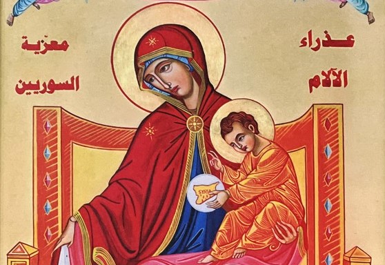 أيقونة عذراء الألام معزّية السوريين التي كرّسها قداسة البابا فرنسيس في صلاته من أجل الشعب السوري وخصوصاً المسيحيين السوريين والمفقودين والشهداء منهم.