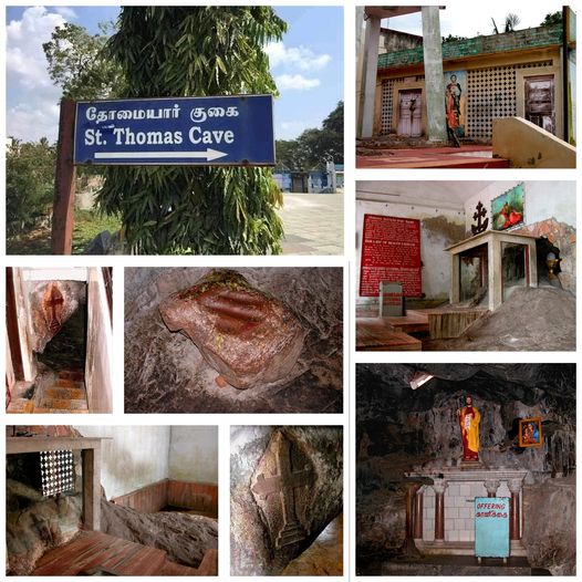 صور من المغارة التي كان يتواجد فيها القديس توما الرسول في الهند وفيها حيث يعتقد حادثة معجزة المياه في الصخر والصليب الذي ينزف دماً “
