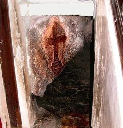 صور من المغارة التي كان يتواجد فيها القديس توما الرسول في الهند وفيها حيث يعتقد حادثة معجزة المياه في الصخر والصليب الذي ينزف دماً “
