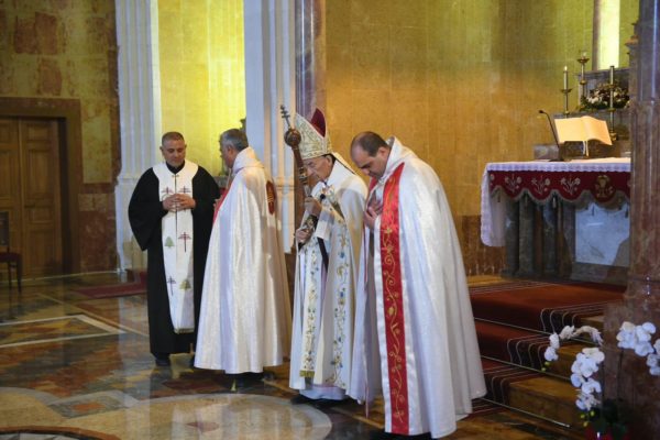 وفي الكنيسة ثلاثة مذابح أحدها من الرخام على شكل نصف دائرة وبحسب الشروحات المحلية يعود هذا المذبح الى فترة ما قبل المسيح أما المذبح الثاني فهو منحوت في الحجر ومستطيل الشكل وقد وضع تحت قبة محفورة في الصخر تجسد السماء ومزينة جدرانها برسم للسيدة العذراء نفذ عام 1824 بحسب التقليد البيزنطي الى جانب مجموعة مهمة جدا من الأيقونات التي رسمها فنانون سوريون وعالميون.