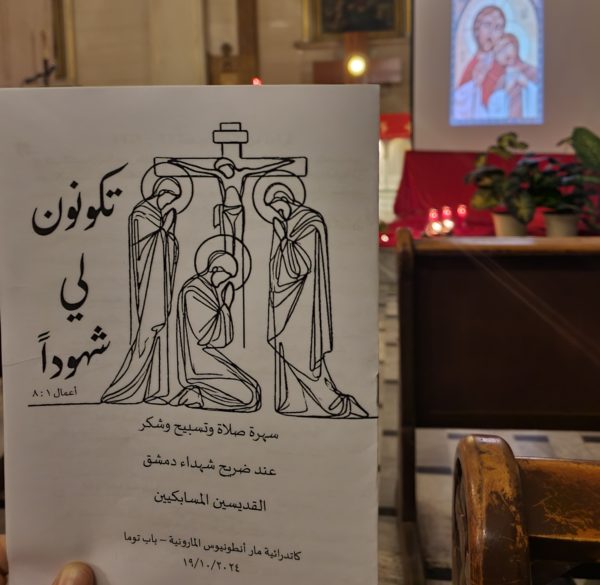 الكاهن: بِشَفاعة شُهدائِنا الأبرَار، مار فرنسيس وعبد المعطي ورفائيل المسابكيين، فليُبارِكْكُمُ الثالوث الأقدَس الآب + والابن + والروح القدس +