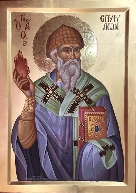 إيقونة القدّيس اسبيريدون مع سل القش وحجر الفخار