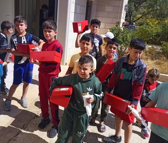 وزعت الكنيسة قبل العيد عطايا للأسر الفقيرة .. وكانت عباره عن أحذية اطفال تبرع بها أحد اصحاب مصانع الأحذية .