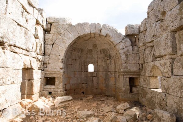 – كنيسة صغيرة ( شابيل ) وتقع أعلى الهضبة وهي بأبعاد 13×6,5 م تتألف من بهو واحد وتعود إلى القرن السادس .