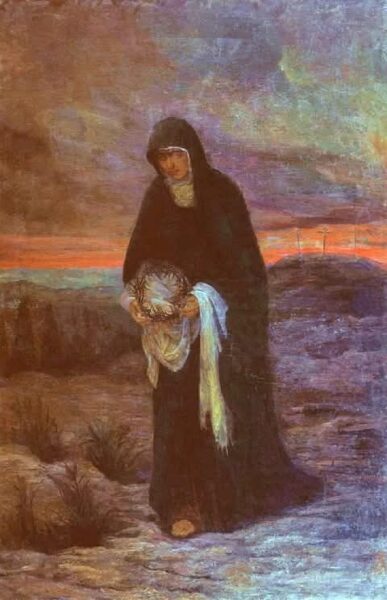 لم يكن المسيح ضحيّة مغلوباً على أمرها، بل المنتصر، حتّى في تواضعه الأقصى. ايضاً كما نشاهد وضعية الجسد وانحناء راس السيد هو نفسه انحناء راس السيد على الصليب باتجاة امه السيده العذراء وفي الكثير من الاحيان نرسم السيده تعانق السيد في هذه الايقونة.
