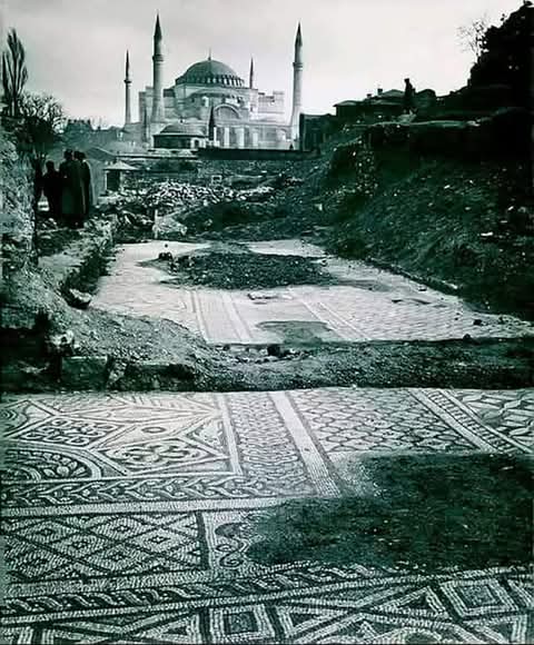كشفت الحفريات التي أجريت بين عامي 1935م و1951م عن فسيفساء رومانية – رومية ذات ثراء فني كبير، لايقدر وتعود الى زمن بنائها عام 313م خاصة في منطقة تعرف اليوم باسم السلطان أحمد، بالقرب من كاتدرائية آيا صوفيا ( الحكمة الالهية) الشهيدة.