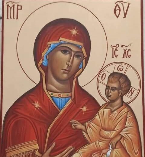 من النادر جداً أن نرى في الإيقونات الأرثوذكسية والدة الإله بدون المسيح الطفل. في هذه الحالات هي مُصوّرة كمتألّمة واقفة عند الصليب مصلّبة يديها على صدرها ومنحنية الرأس، وفي بعض الأحيان مع سيوف رمزية تجوز في قلبها. ولكن قلبها لا يُصوّر أبداً. أكثر إيقونات العذراء انتشاراً تصوّر الطفل الإله على يديها. لقد ظهرت في العالم من أجل ابنها. رسالتها كانت مكرّسة لابنها. حاشا أن ينظر أحد إليها كامرأة، ولكن دائماً كأمّ فقط لا غير. إنها تُظهر أسمى وأنقى وأقدس أمومة منذ بداية الأزمنة وحتى نهايتها. هي أمّ ربنا يسوع المسيح ولكنها أمّنا نحن أيضاً، وهي المعزّية والسريعة المعونة. ولتكن هي لك أيضاً تعزية ومعونة دائماً.
