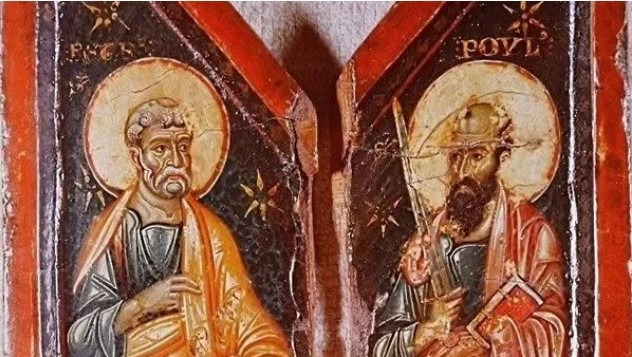 إلى جانب بطرس، يقف بولس، الذي تحوّل من مضطهد للمسيحيين إلى أحد أبرز مبشري المسيحية في العالم القديم. يُصوّر بولس غالبًا في الأيقونات بملامح صارمة وكتاب مفتوح أو سيف، دلالة على رسائله العديدة ومواقفه الحاسمة في الدفاع عن العقيدة المسيحية ونشرها.