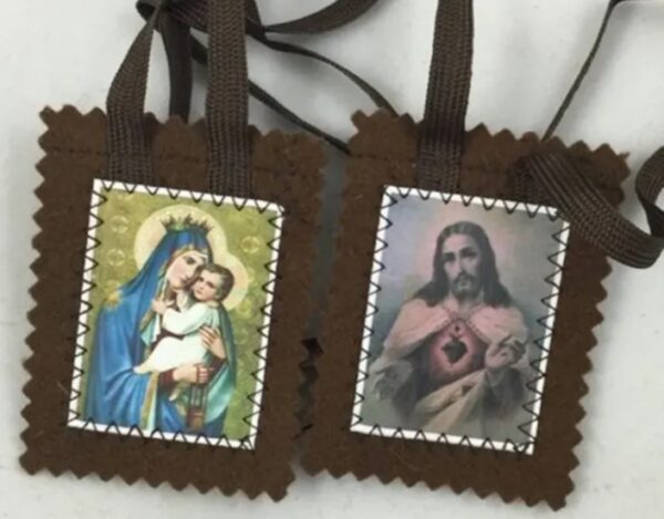 ففي 16 تمّوز/ يوليو 1251، ظهرت العذراء مع جوق الملائكة حاملة بيدها “ثوب سيّدة جبل الكرمل”، وهو عبارة عن قطعتي قماش متّصلتين بخيطين، إحداهما بيضاء اللّون تحمل صورة للعذراء مع الطّفل يسوع؛ والأخرى بنّيّة اللّون، اللّون الّذي طبع لباس الكرمل الرّهبانيّ.