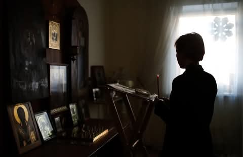بعد أن كان يُشعل القناديل، كان يدهن بندقيته بزيت القنديل المعلّق أمام أيقونة والدة الإله، ثمّ يجثو أمامها ويقول لها بإيمان بسيط: “امنحيني يا والدة الإله قليلاً من اللحم لأطفالي.”
