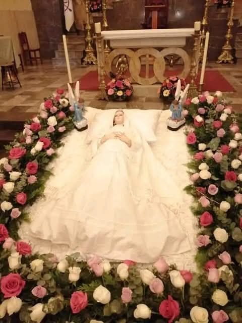 فتحوا القبر وبدلاً من رؤية جثة العذراء وجدوا فقط… كمية كبيرة من الزهور الجميلة جدا جاء يسوع المسيح، وقد رفع والدته المباركة وأخذها إلى السماء.