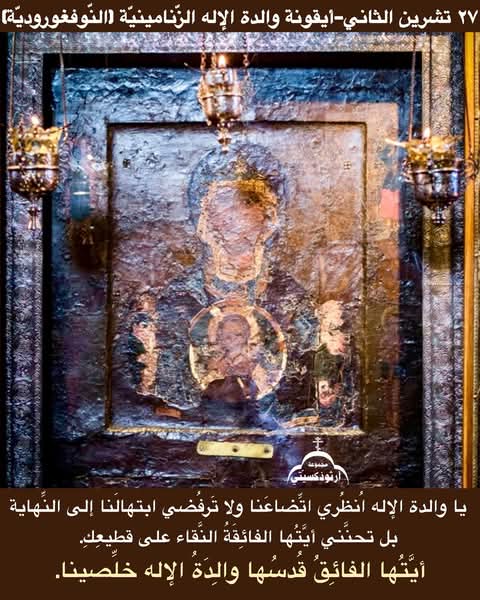 بمعجزة تمت بايقونة والدة الاله الزنامينية. فتخليد لذكرى هذه المعجزة الباهرة عيّن رئيس الكهنة يوحنا ان يُعيد سنويّاً في اليوم السابع والعشرين من شهر تشرين الثاني لايقونة والدة الاله الزنامينية في مدينة نوفغورود العظيمة وسماه يوم خلاص نوفغورود ويوم قصاص المحاربين للمؤمنين.