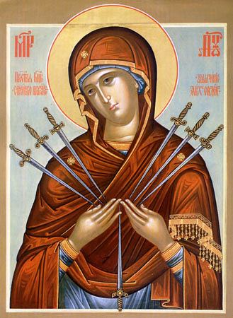 أتوسل إليك يا ربي يسوع المسيح، أن تشفع فينا لدى رحمتك العذراء الطوباوية مريم التي جاز في نفسها سيف الحزن ساعة آلامك. آمين.