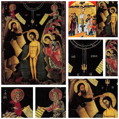 – إذا كان عنوان الأيقونة كما هو مدوّن عليها أعلاه باللغّة اليونانيّة: «التغطيس»، فهو لكي نخلع في هذا العيد المبارك الإنسان العتيق، إنسان الخطيئة، الإنسان الأنانيّ، الإنسان المائت، الإنسان الترابيّ، الإنسان الزائل، وندخل مع الرّب عراةً من كلّ شهوة وخطيئة، لنلبس معه الإنسان الجديد، الإنسان النورانيّ والإنسان القياميّ.