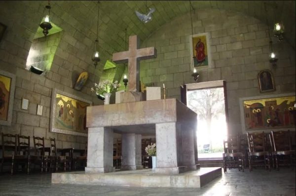 يتوسّط الكنيسة مذبح رخامي ضخم، وعلى جدرانها عُلّقت ستّ أيقونات تروي أحداثها تسلسل حياة القديس بولس التبشيريّة، رَسَمها فنّانٌ روسي لمناسبة زيارة البابا يوحنا بولس الثاني باب كيسان بدمشق في العام 2001، ملتزمًا في عمله الإنجيل مرجعًا.