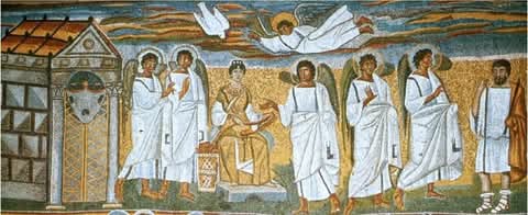 <span;>ففي دياميس روما وتحديدًا دياميس بريسكيلا، نشاهد جداريّة في السقف لعيد البشارة مِن القرن الثالث ميلاديّ تظهر ملاكًا ليس له أجنحة كما عاد وساد لاحقًا، يمد يده نحو والدة الإله وهي جالسة على العرش.