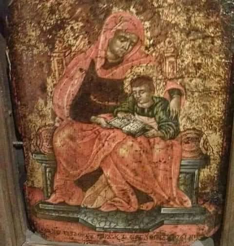 أيقونة نادرة لوالدة الإله تقرأ للمسيح تقع الأيقونة في دير Leimonos، بالقرب من خليج Kaloni في ليسبوس.