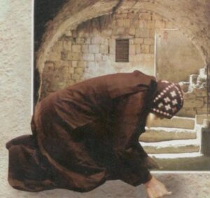 وهو موسوم بالصليب على ظهره، ليحتمل بوداعةٍ، ومن أجل الله، جميع المعاكسات التي تلحق به من قبل الآخرين.