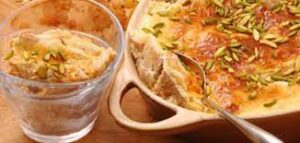 - يحمى الفرن حتى180 درجة مئوية (350 ف) ثم تدهن الصينية بالزبدة ويرش فوقها الطحين.