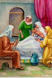 قال لوقا البشير: تمّ زمان اليصابات لتلد، فولدت ابناً. وسمع جيرانها وأقاربها أن الرب قد عظّم رحمته لها، ففرحوا معها. وفي اليوم الثامن جاؤوا ليختنوا الصبي، وسمّوه باسم أبيه زكريا. فأجابت أمه وقالت: ” لا! بل يُسمى يوحنا!”. فقالوا لها: ” لا أحد في قرابتك يدعى بهذا الاسم”. وأشاروا إلى أبيه ماذا يريد أن يسميه. فطلب لوحاً وكتب: “إسمه يوحنا!”. فتعجبوا جميعهم. وانفتح فم زكريا، وانطلق لسانه، وجعل يتكلم ويبارك الله، فاستولى الخوف على جميع جيرانهم، وتحدث الناس بكل هذه الأمور في كل جبل اليهودية. وكان من سمع بذلك يحفظه في قلبه قائلاً: ” ما عسى هذا الطفل أن يكون؟”. وكانت يد الرب حقاً معه.
