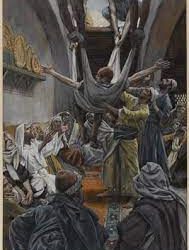 مرّة كان مجتمعًا إلى التلاميذ وأحبائه في أحد البيوت. البيوت الفلسطينيّة طبعًا معظمها صغير، واكتظّ الناس الذين كانوا حول المعلّم.كان يخاطبهم بالكلمة. ما عدا صنع العجائب، هذا ما كان الربّ يفعله إذا واجه جمهورا.