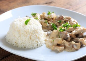 دجاج بالكريمة والفطر يفضل تقديم الطبق مع رز أبيض. المقادير: - 500 غرام دجاج مسحب - 2...