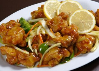 صينية الدجاج الحامضة الحلوة يقدم هذا الطبق مع السلطة وكرات الخبز أو الرز لتكوين وجبة كاملة. ...