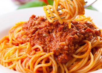 مكرونة بصلصة الطماطم واللحم